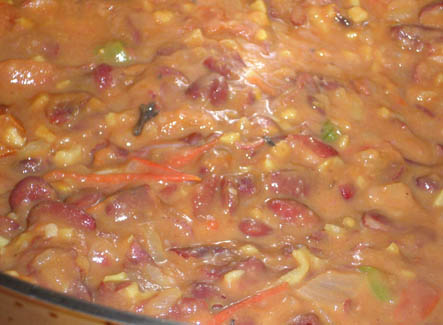 Start by quick-soaking the beans. Once drained. fill them into your soup pot (I use a heavy cast-iron dutch oven with a heavy lid) and add carrots, onion, garlic, stock and bacon. Let simmer slowly until beans are soft, but not mushy - depending on choice and age of your beans this may take between two and four hours. (This is where I let everything sit on the kitchen counter overnight and proceed the next day).