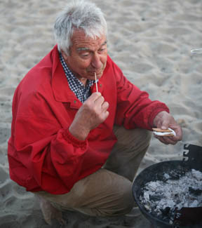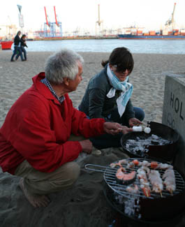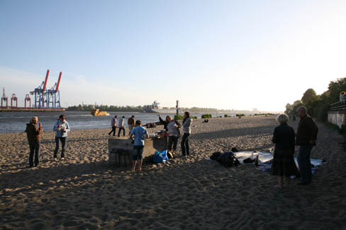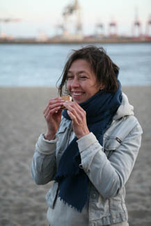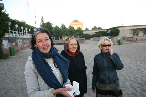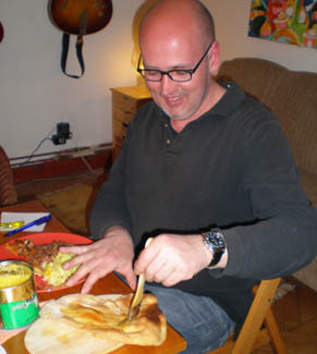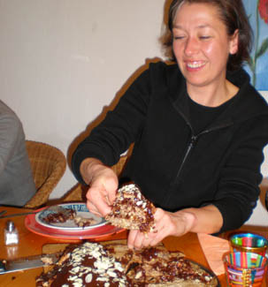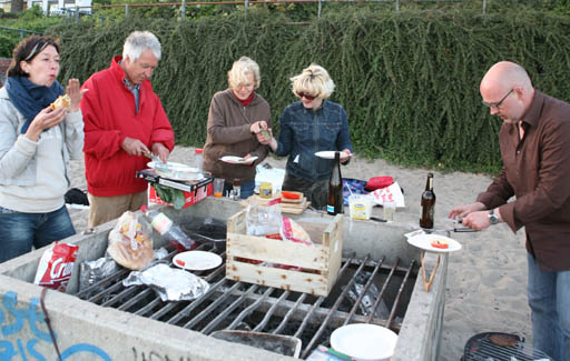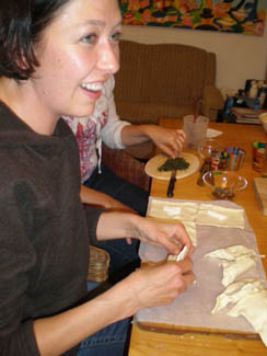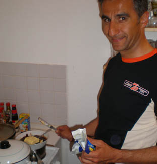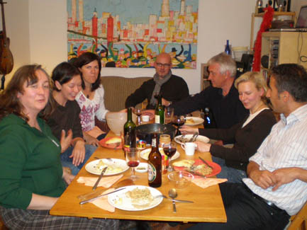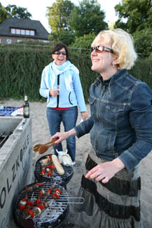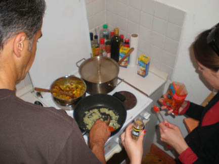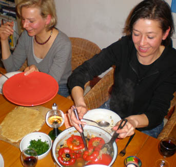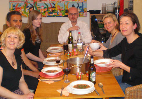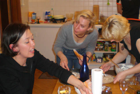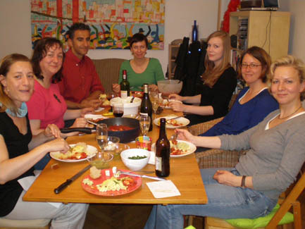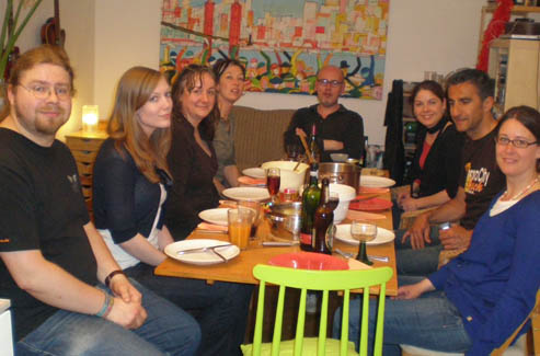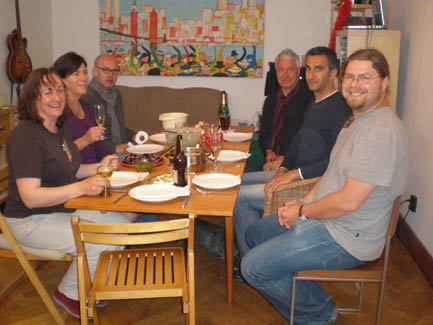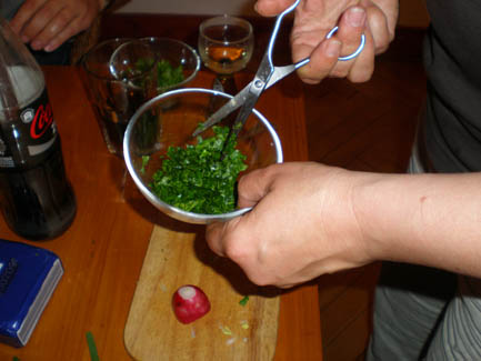 <Kerstin, Christiane, Ralph, Gerd, Cyrus and Daniel >Parsley gets cut for the fatoush salad |