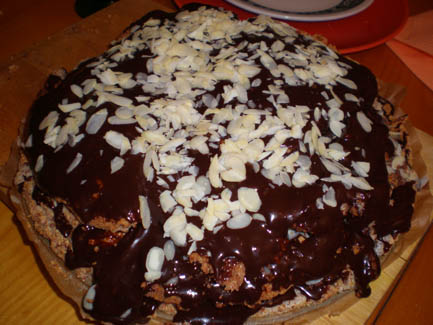 layers. Garnish with the sliced almonds. Refrigerate until firm.