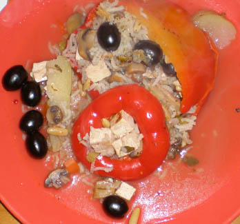 # Stir the mixture. Spoon filling into the peppers. Cover the top of each pepper