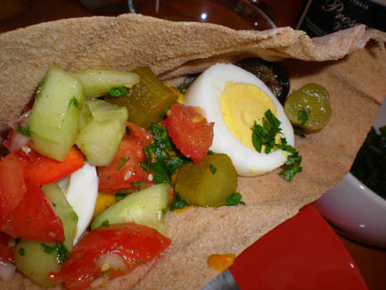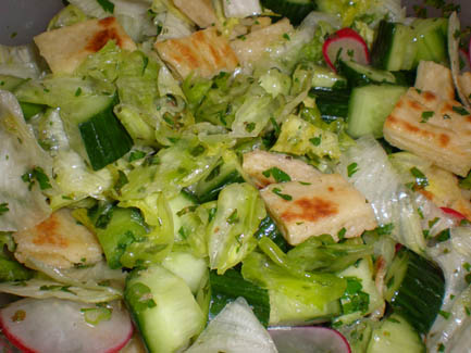 <Fatoush salad, with lots of mint >Eggplant salad |