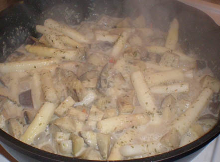them under the grill. Add the bread to the vegetable mixture. Add lemon, salt,
