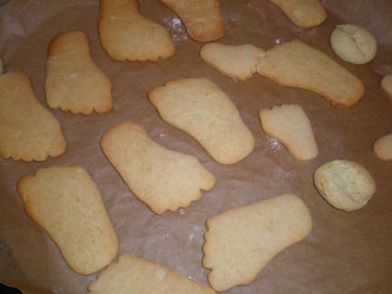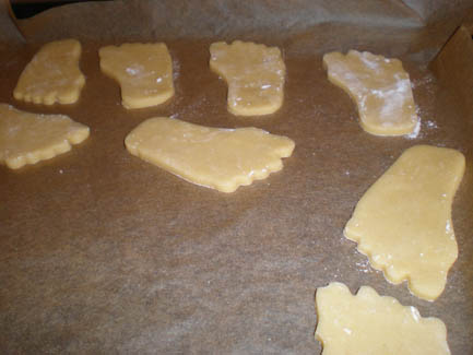 <The only cookie cutters I own are the little feet Andrea gave me for Christmas... >Foot cookies