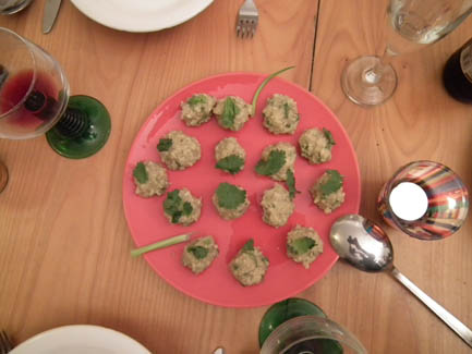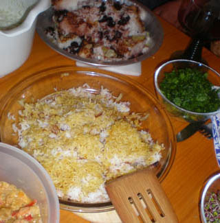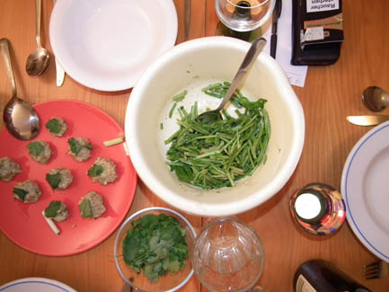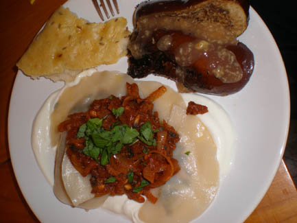 Although we cooked Afghan food in spring of 2008, I found the recipe for Aushak in Ruth Reichl's memoirs (see the 'Things That Go With Cheesecake' night below). The aushak recipe is fantastic - either with or without meat - and so we decided it was time to revisit this country, with resounding deliciousness. Enjoy!