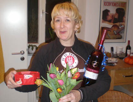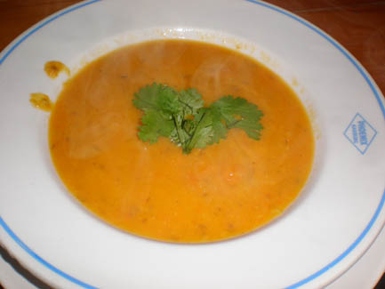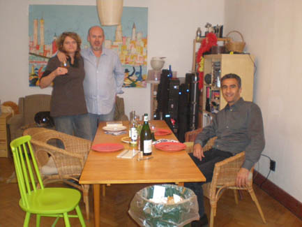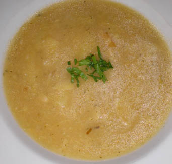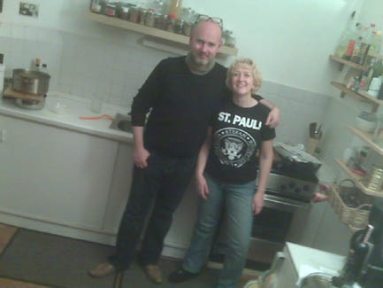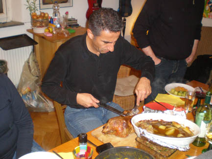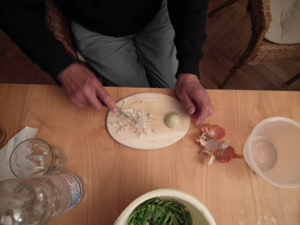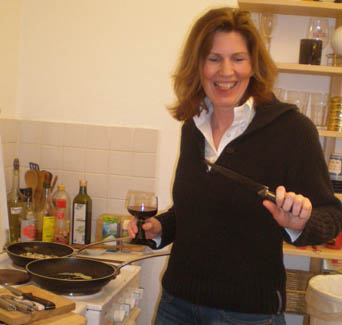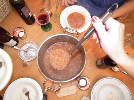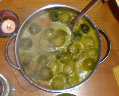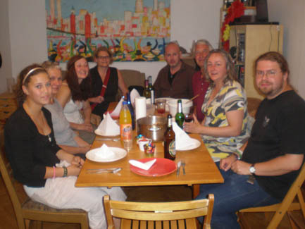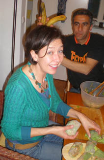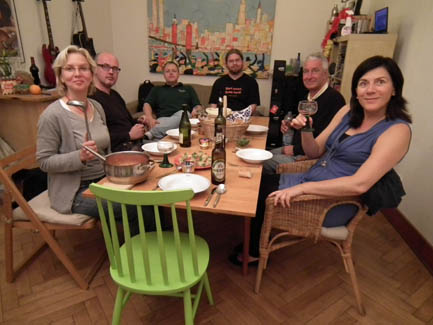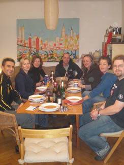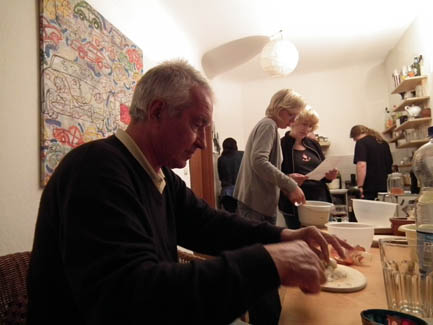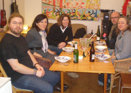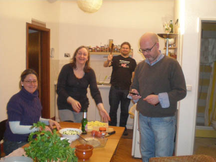 <Cooking in action: Annette, Kerstin, Daniel, Ralph (apparently I forgot to take the group shot before dinner) >Artichoke Soup |
