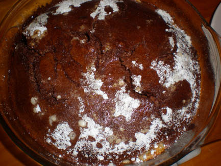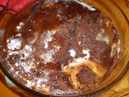 7. Pour chocolate batter into dish, over bananas, and bake for 15-25 minutes,
