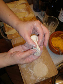 press the edges to make a semi-circle. Repeat with remaining wrappers.